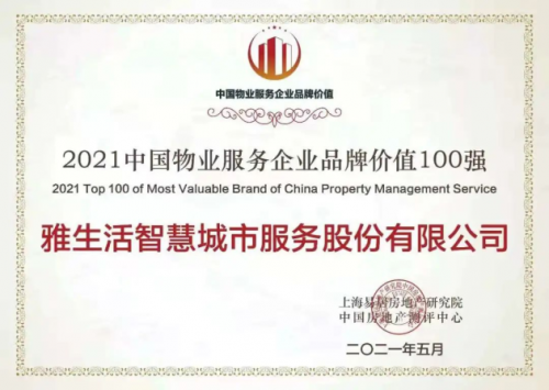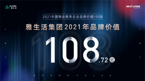 雅生活集团作为中国物业管理行业百强TOP4,荣获“2021中国物业服务企业品牌价值100强”,凭借优异稳定的市场表现,实施“智慧城市服务商战略”使雅生活品牌影响力与发展潜力走在行业前沿,品牌价值再创新高达到108.72亿,品牌实力更上新台阶。